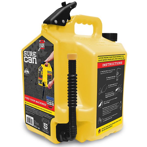 SureCan 5 Gallon Controlled Flow Diesel Fuel Can with Rotating Nozzle, Yellow
